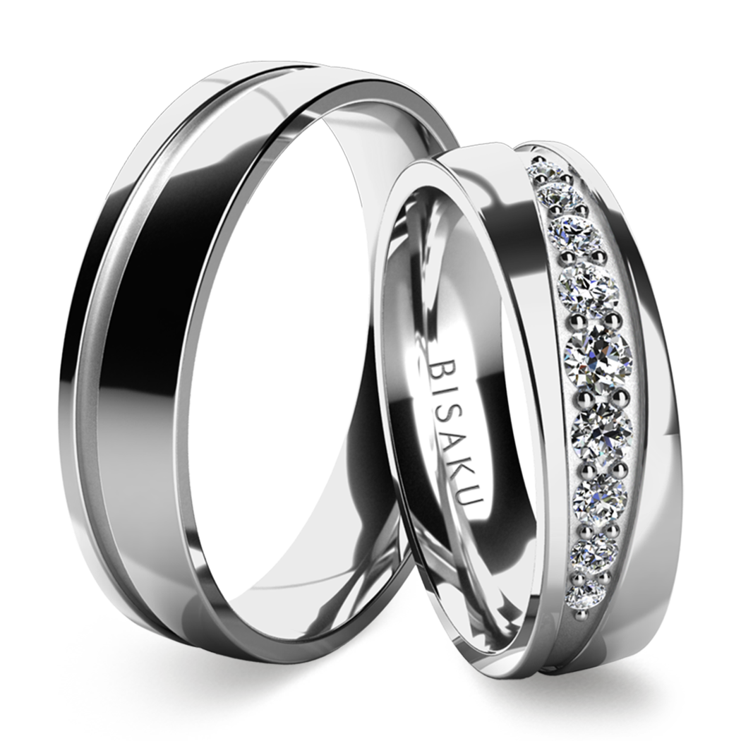 Durch die Edelsteine in unterschiedlicher Größe kommt die quer verlaufende Rille so richtig zur Geltung. Der Untergrund in Satinmatt sorgt für ein strahlendes Funkeln.
