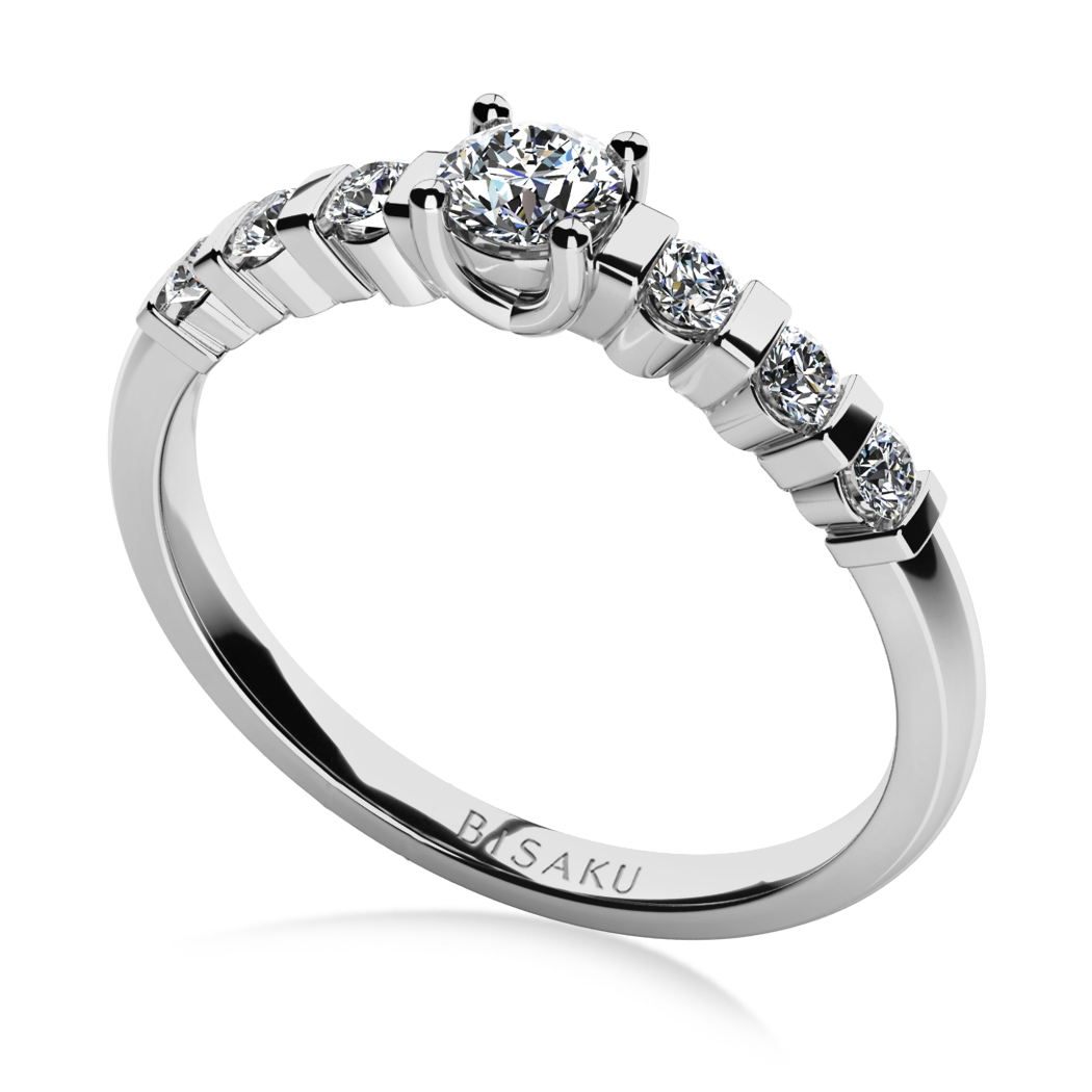Lassen Sie sich vom Funkeln des mittigen Solitärsteins verzaubern. Die mit mehreren Steinen im Bar-Setting besetzte Ringschiene verleiht diesem Verlobungsring ein modernes und stilvolles Aussehen.